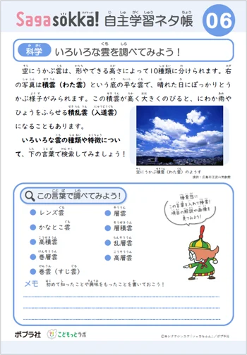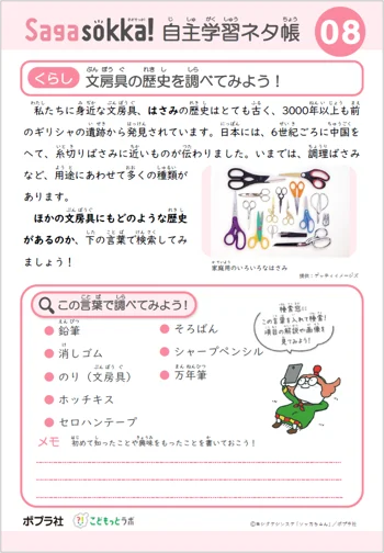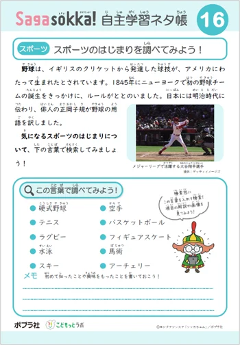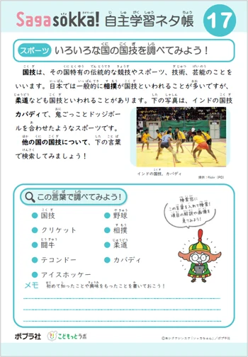 サポートページトップ>活用ツール・使い方動画>Sagasokka!>ワークシート> Sagasokka!/自主学習ネタ帳
